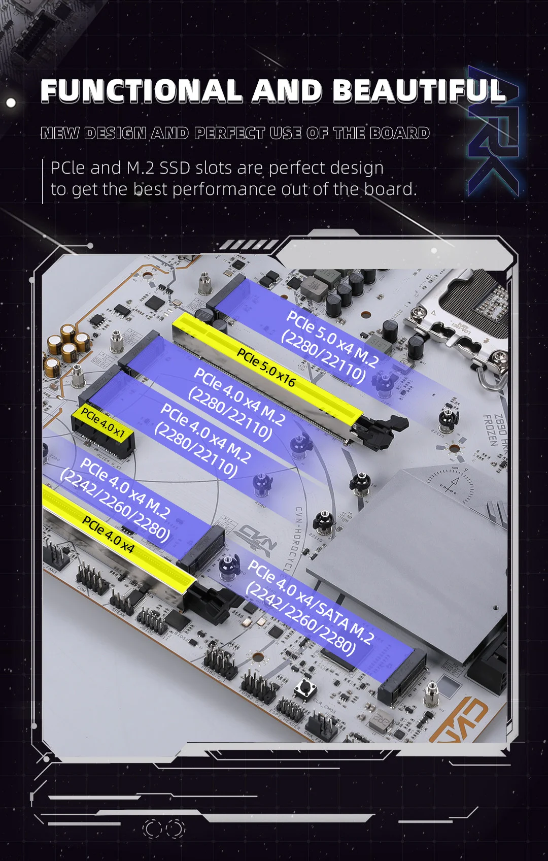 PCIe ve M.2 SSD yuvaları, karttan en iyi performansı almak için mükemmel ve şık bir tasarıma sahiptir.