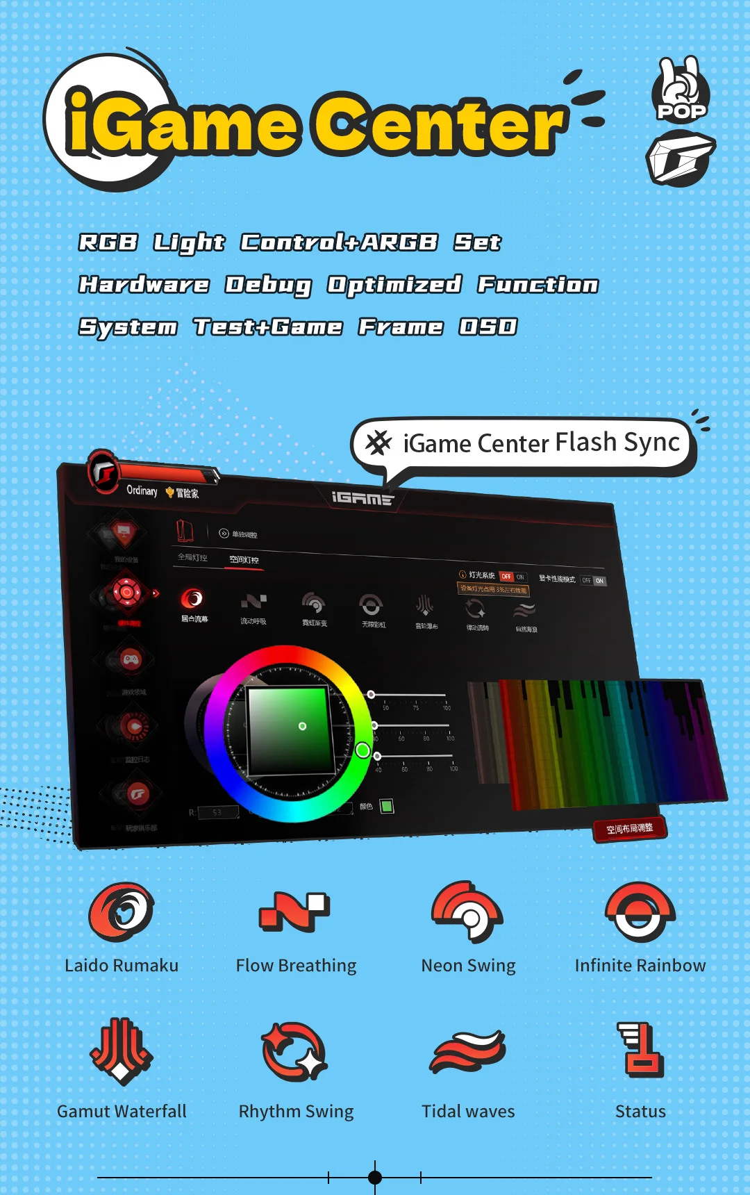 RGB ışık Kontrolü+ARGB seti, Donanım hata ayıklama optimize fonksiyonu, Sistem testi+oyun çerçevesi OSD
