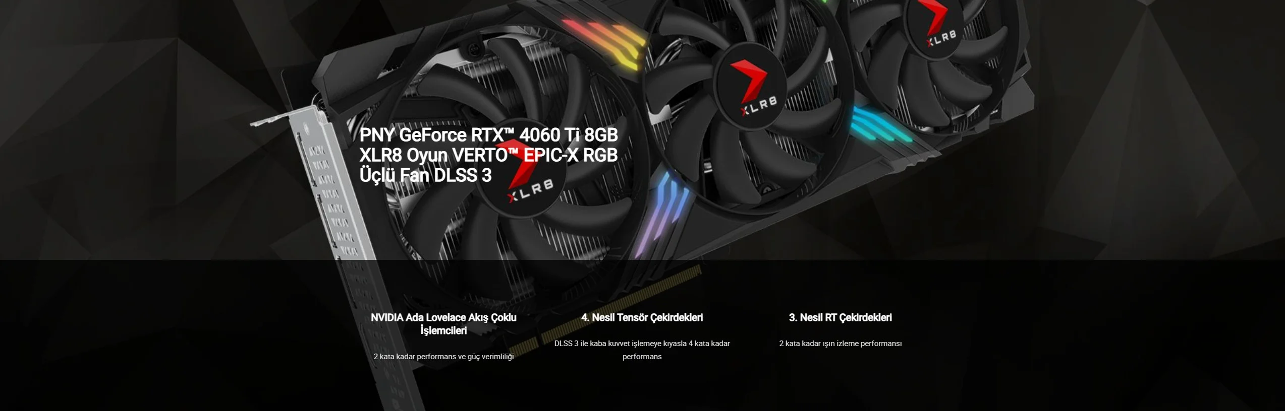PNY RTX 4060 Ti XLR8 Gaming VERTO RGB 8 GB GDDR6 128Bit (VCG4060T8TFXXPB1) DX12 Gaming (Oyuncu) Ekran Kartı