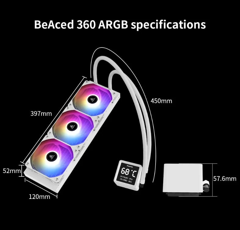 - SEGOTEP BeVere 360mm ARGB Beyaz Sıvı Soğutucu 136,85 $